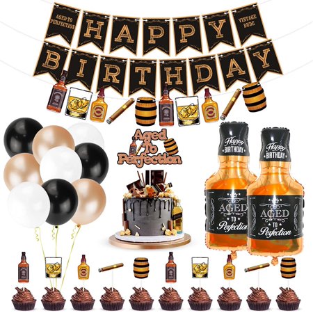 Whiskey Birthday Party Decorations Aged To Perfection Birthday Party Supplies With Whiskey Birthday Banner Garland Whiskey Cake Toppers White Black Champagne Balloons Whiskey Bottle Foil Balloons Walmart Canada